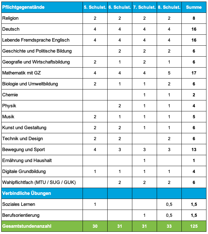 (Unter Berücksichtigung des neuen Lehrplans für Mittelschulen in der 5.-7. Schulstufe)